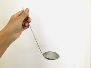 液体を容器に移した後、スプーンやお玉を使って表面の泡を取り除きます。